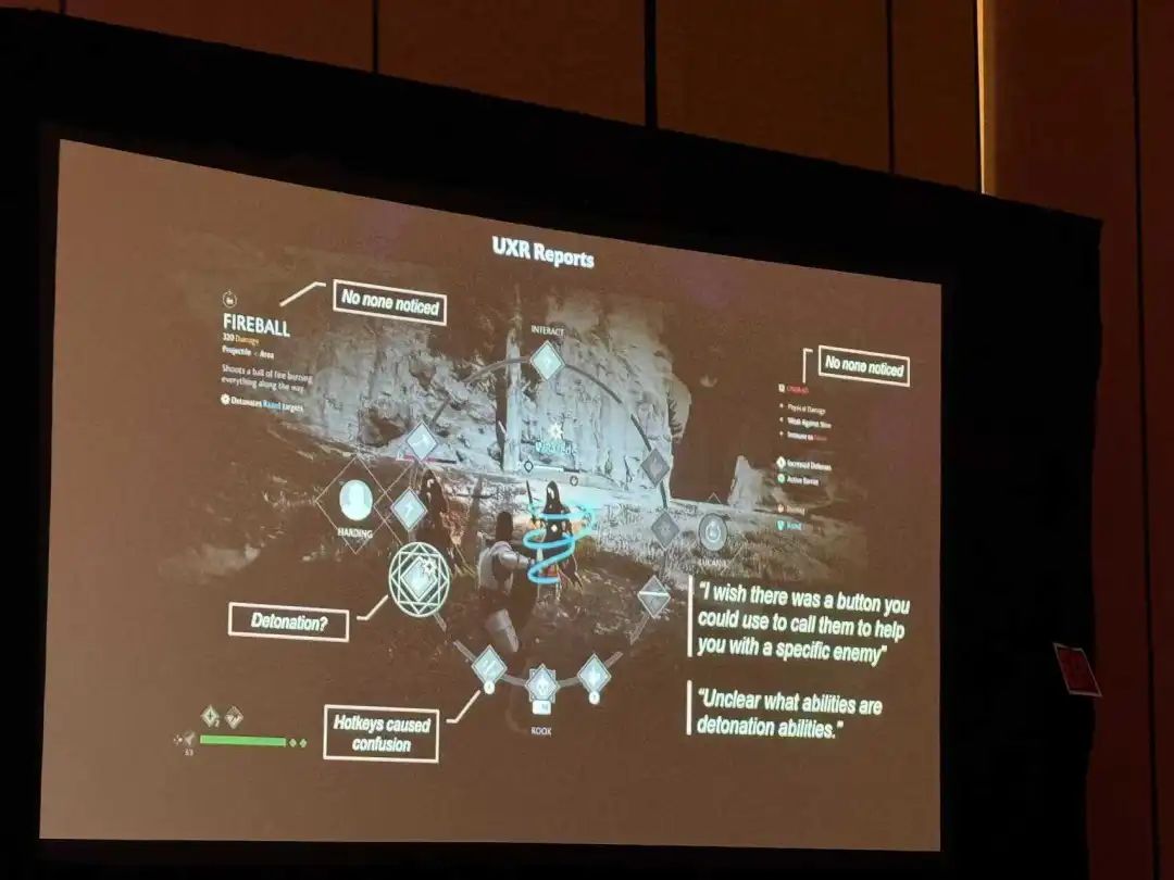 其中能够让玩家接受的关键,自然是游戏的UX设计,即如何在动作 RPG中既保持设计深度,又能够让其更加平易近人。Bio Ware 首席用户体验设计师 Bruno,也通过《龙腾世纪4》中的“战斗轮盘”的迭代过程 ,向我们一步步展示如何通过战斗机制、信息的清晰表达,来让玩家上手并探索游戏内的动作RPG深度 。