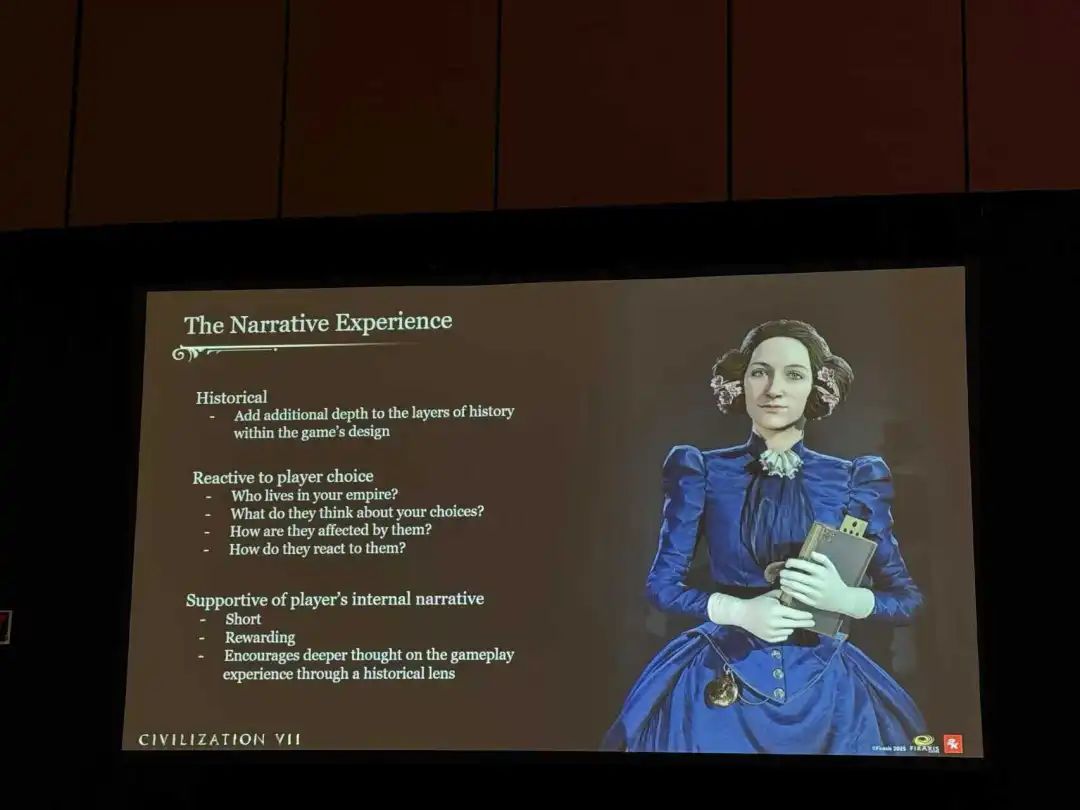 在GDC 2025上,来自Firaxis《文明 VII》开发团队的四位高管参加了游戏叙事峰会,从叙事系统、虚构叙事与真实历史的平衡、游戏如何看待历史三种角度分享了他们的经验。