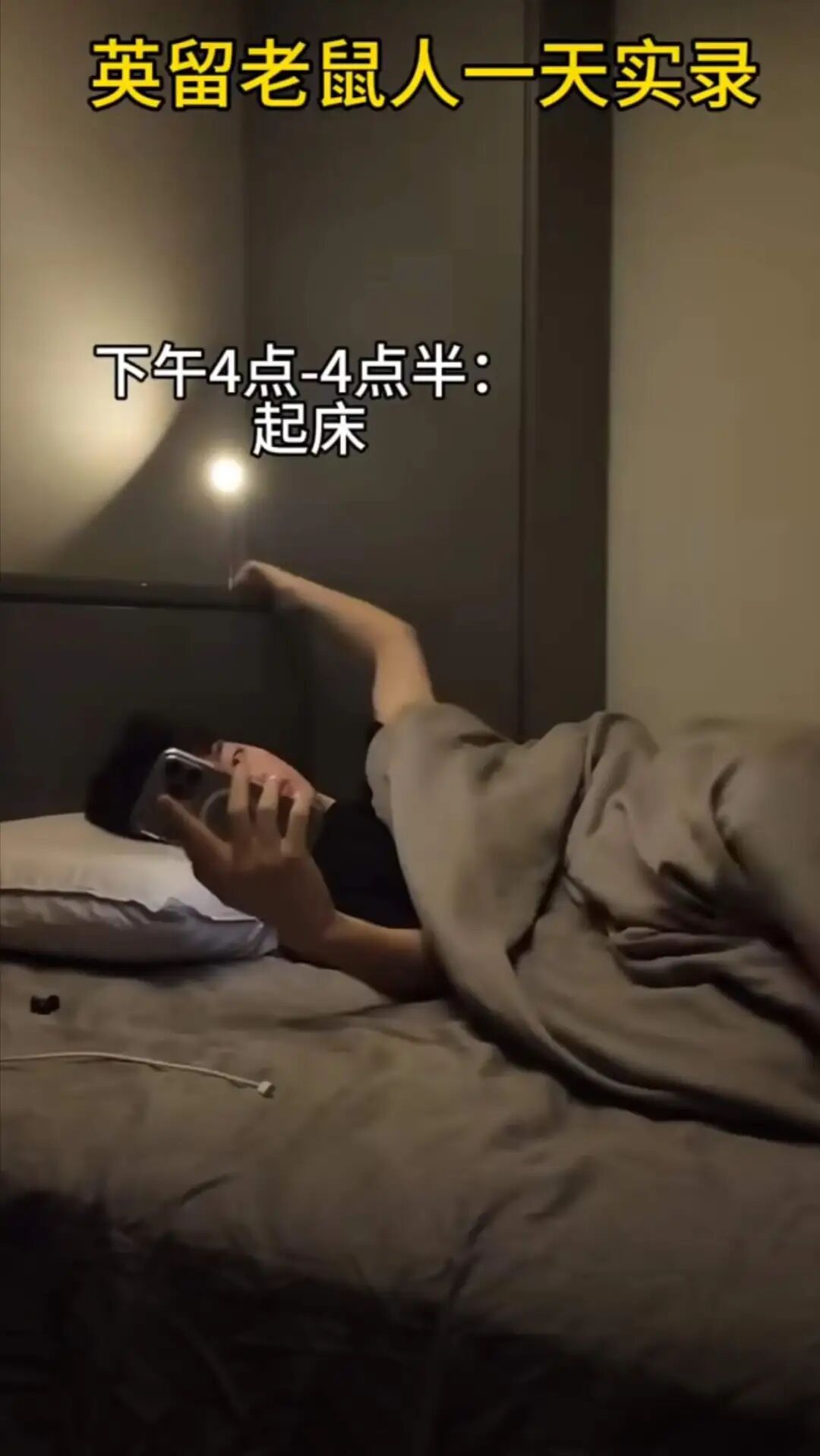 这类自称为“老鼠人”并拍摄一日vlog的风气应该是从英区留子刮起来的,在这种vlog里,他们以床为活动轨迹中心,必须到整点才会进行下一步活动,生存需求似乎被压到最低,实在该补充能量了就吃点白人饭。
