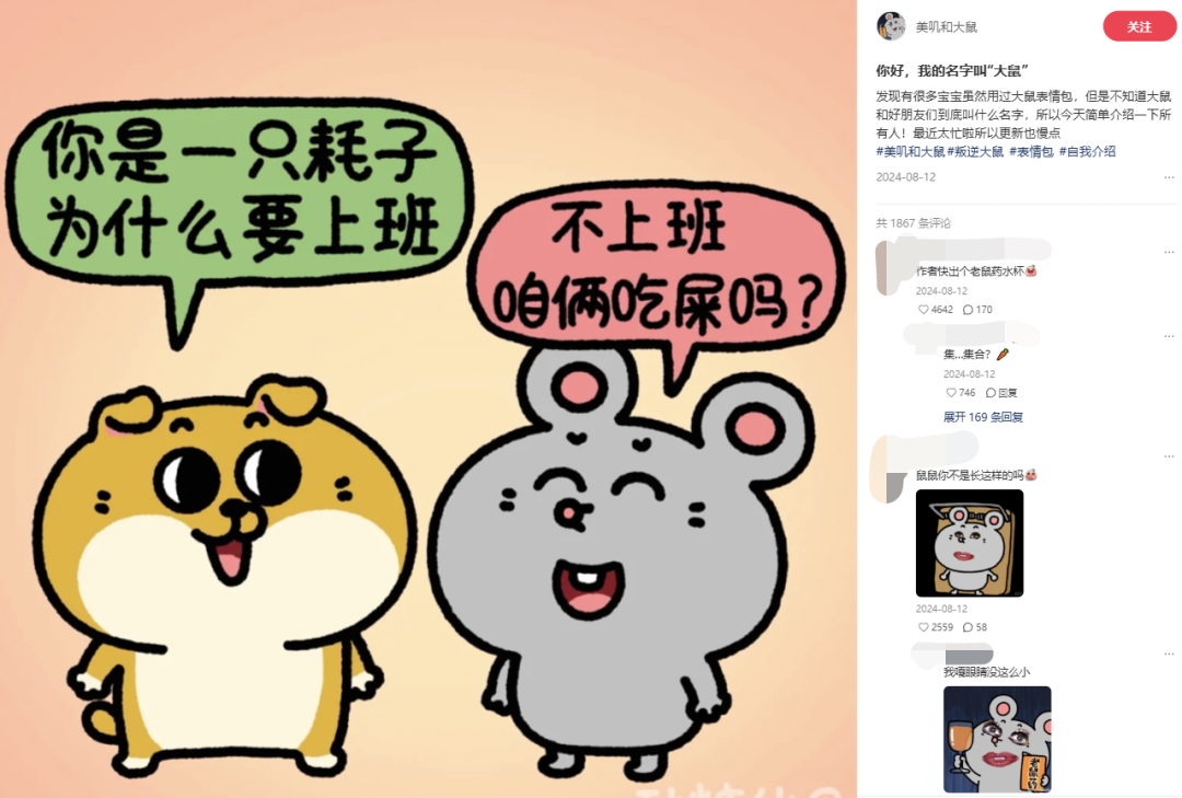 但这个梗能连接起所有不同情形下的网友,让我们在不至于太侵入彼此私人空间的情况下,成为“赛博搭子”。把上面“阴暗老鼠人”的梗换成其他IP、游戏、播客等等,也都行得通。