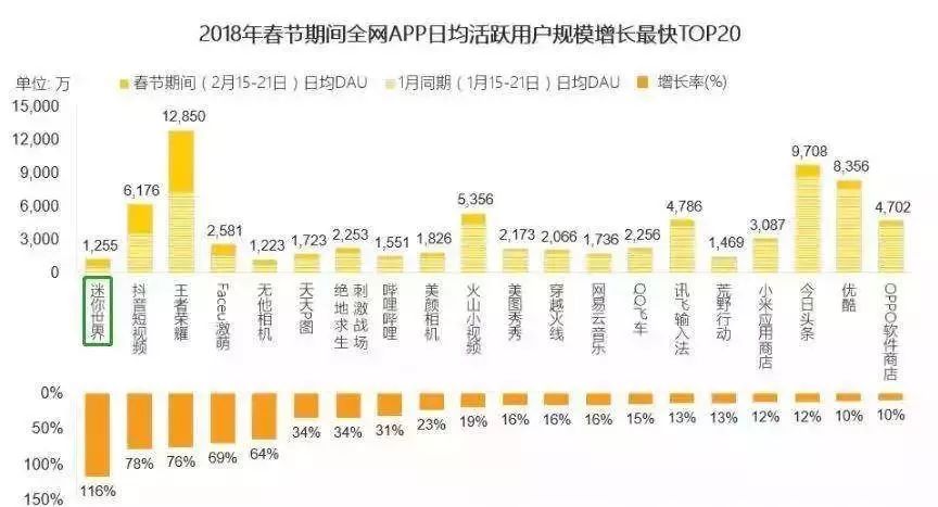 即便在2017年如此迅速增长的情况下,2018春节期间的《迷你世界》还实现了116%的增长率。