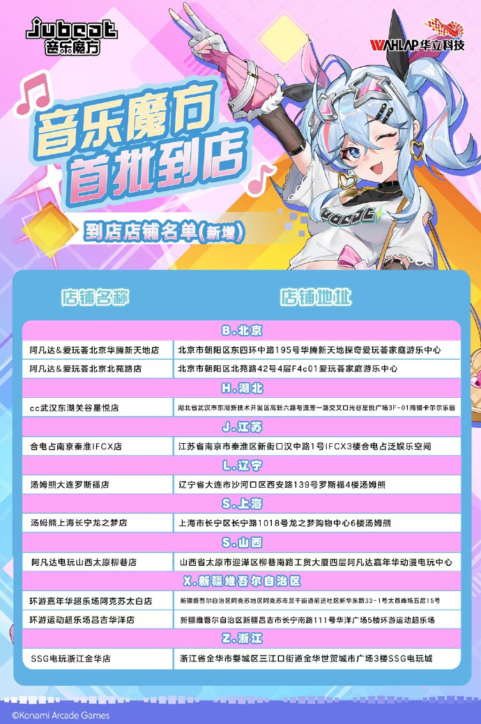 竞核12月27日消息,由日本KONAMI正版授权、华立科技全新引进的街机音游《jubeat音乐魔方》正式在中国大陆投入运营。此次回归并非简单复刻,设备采用了全新设计的4K双屏系统和动态灯效,视觉冲击力更强。游戏首发曲库包含300首歌曲,未来将更新经典、流行曲目及华立原创曲。